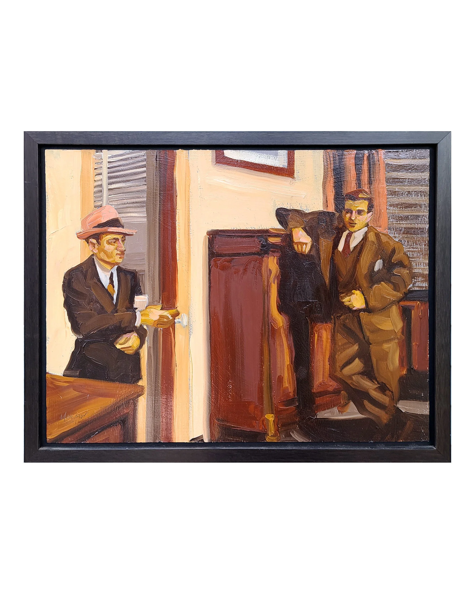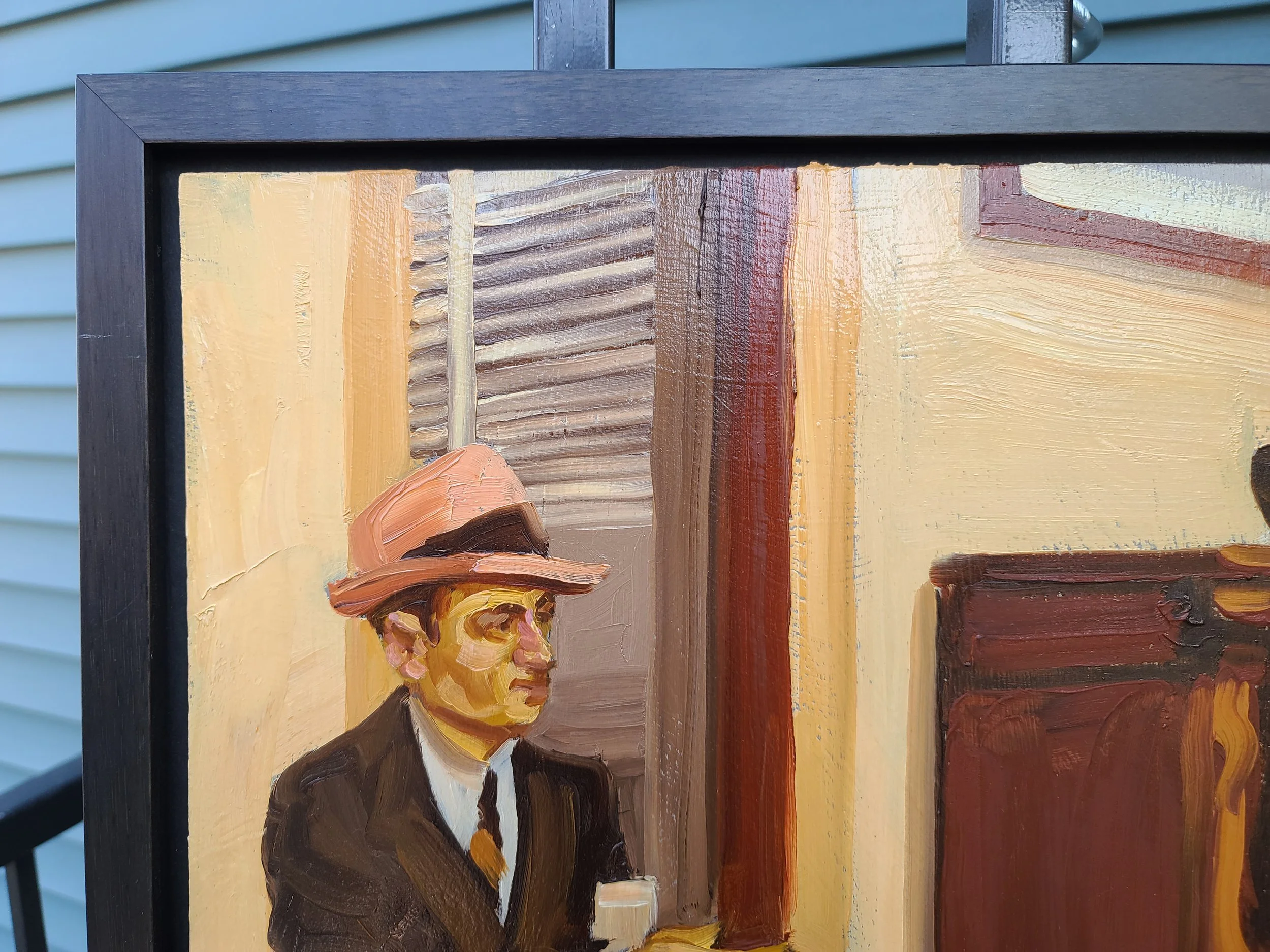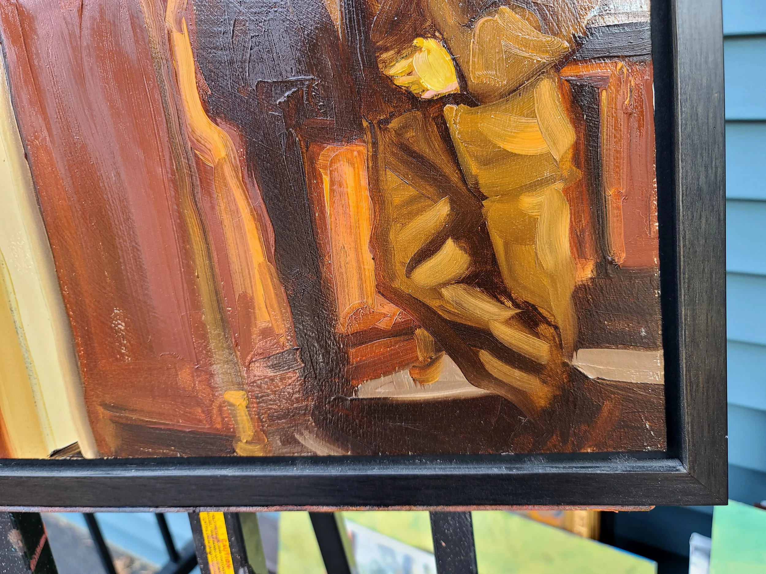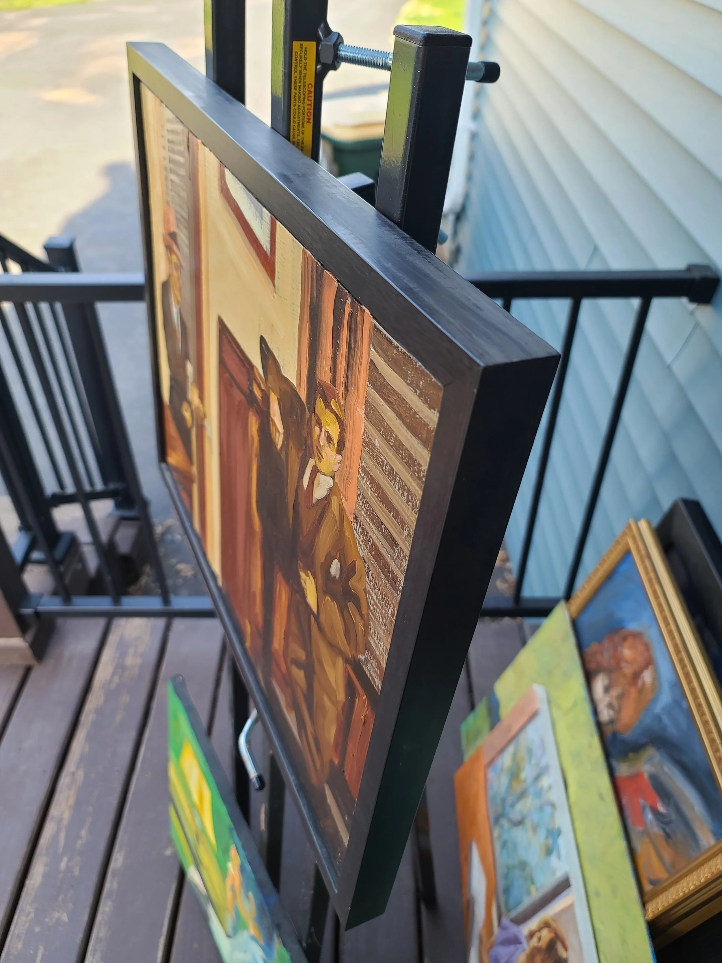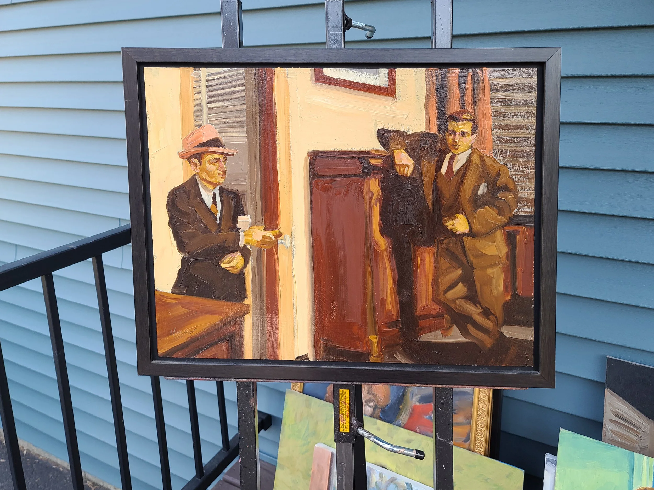 This painting is called "After Hours Visit." I painted it in 2001, and it’s oil on wood panel, framed and ready to hang. It’s part of my Fresh Finds archive project—where I’m releasing older work from my studio storage that hasn’t been shown in years.